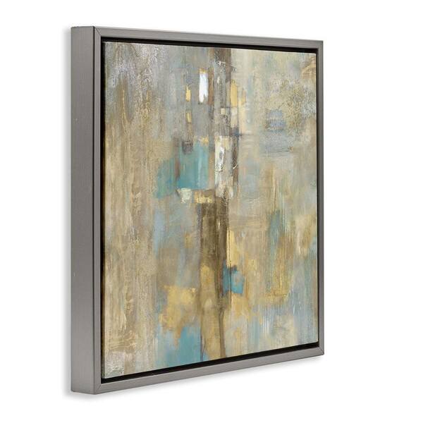 Gold Abstract with Blue by Justin Turner Gray Floater Frame Abstract Graphic Art Print 25 in. x 25 in.