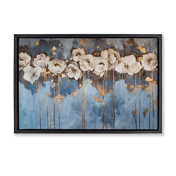 Gold Drip Peonies by LSR Design Studio Black Floater Frame Nature Graphic Art Print 21 in. x 31 in.