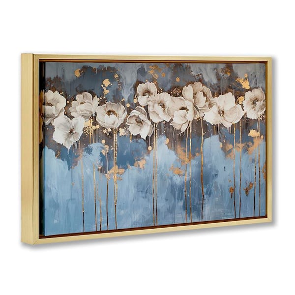 Gold Drip Peonies by LSR Design Studio Gold Floater Frame Nature Graphic Art Print 17 in. x 25 in.