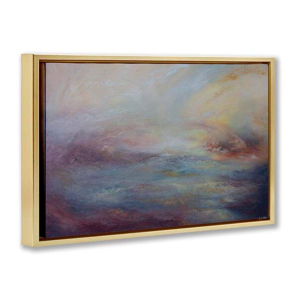Golden Hour Swirled Abstract by Lydia Orange Gold Floater Frame Abstract Graphic Art Print 21 in. x 31 in.