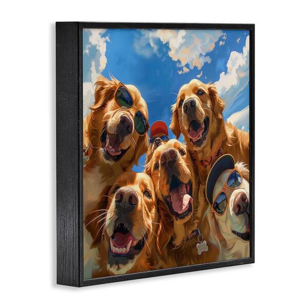 Golden Retriever Group Selfie by Jim Baldwin Black Framed Animal Giclee Art Print 17 in. x 17 in.