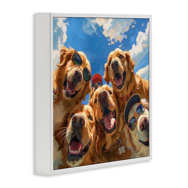 Golden Retriever Group Selfie by Jim Baldwin White Framed Animal Giclee Art Print 12 in. x 12 in.
