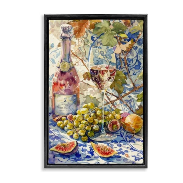 Grapes & Wine Bottle by LSR Design Studio Black Floater Frame Food Graphic Art Print 25 in. x 17 in.