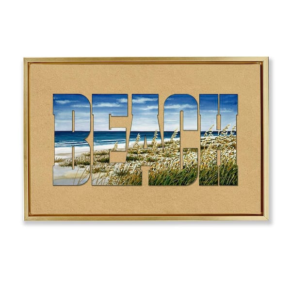 Grassy Beach Typography by Art Brands Holdings, LLC. Gold Floater Frame Coastal Graphic Art Print 17 in. x 25 in.
