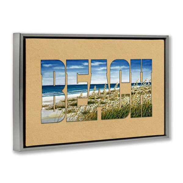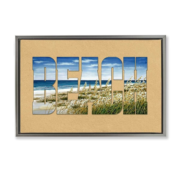 Grassy Beach Typography by Art Brands Holdings, LLC. Gray Floater Frame Coastal Graphic Art Print 21 in. x 31 in.