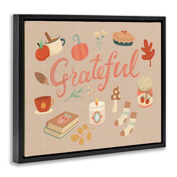 Grateful Cozy Fall Essentials by Laura Watson Black Floater Frame Typography Graphic Art Print 17 in. x 21 in.