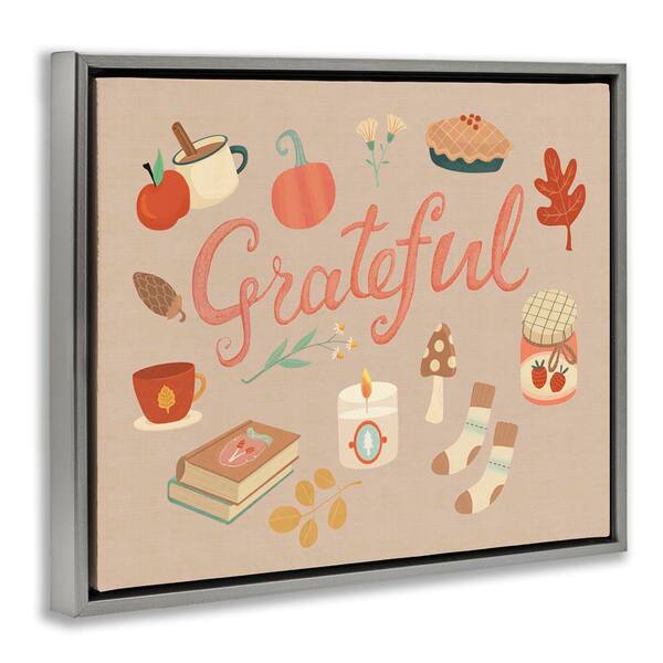Grateful Cozy Fall Essentials by Laura Watson Gray Floater Frame Typography Graphic Art Print 25 in. x 31 in.