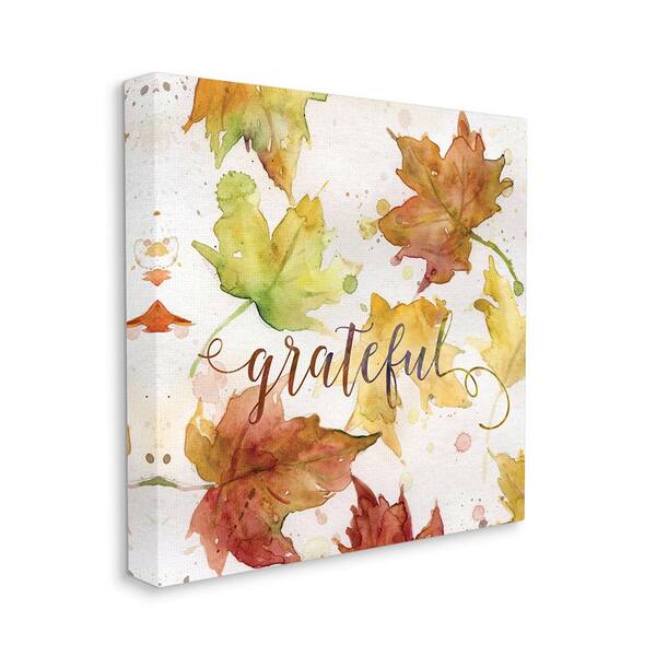 Grateful Fall Maple Leaves by Carol Robinson 1-Piece Unframed Graphic Print Typography Poster Art Print 24 in. x 24 in.