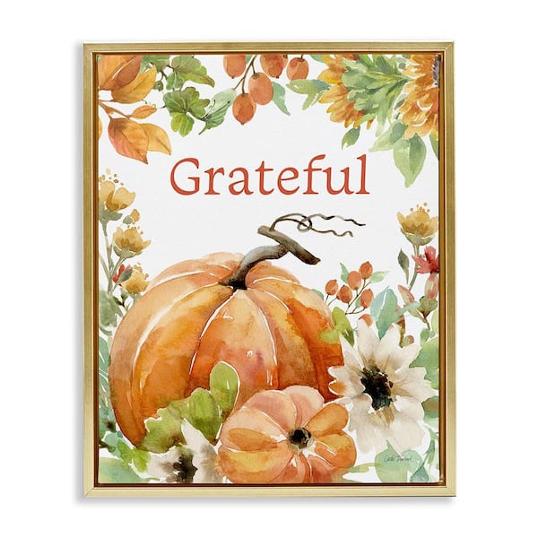 Grateful Pumpkins & Flowers by Leslie Trimbach 1 Piece Floater Frame Graphic Print Typography Art Print 21 in. x 17 in.