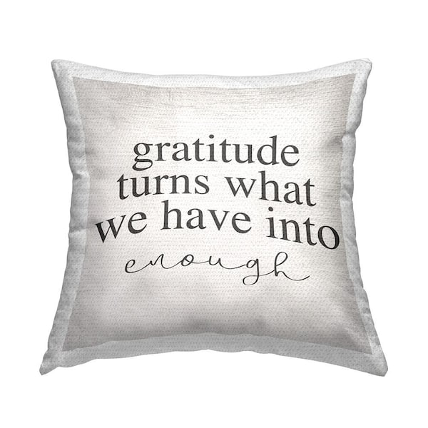Gratitude Into Enough Inspirational Family Home Word Design Printed Pillow Beige Square Outdoor Throw Pillow