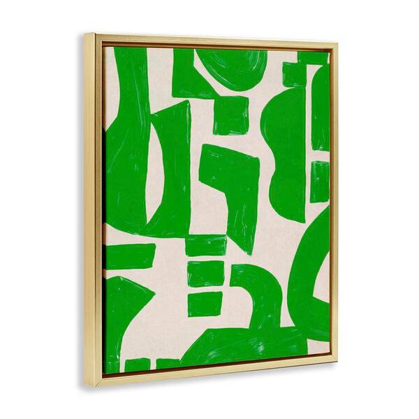 Green Asymmetrical Shapes by June Erica Vess Gold Floater Frame Abstract Graphic Art Print 31 in. x 25 in.