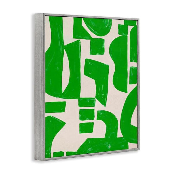 Green Asymmetrical Shapes by June Erica Vess Gray Framed Abstract Giclee Art Print 20 in. x 16 in.