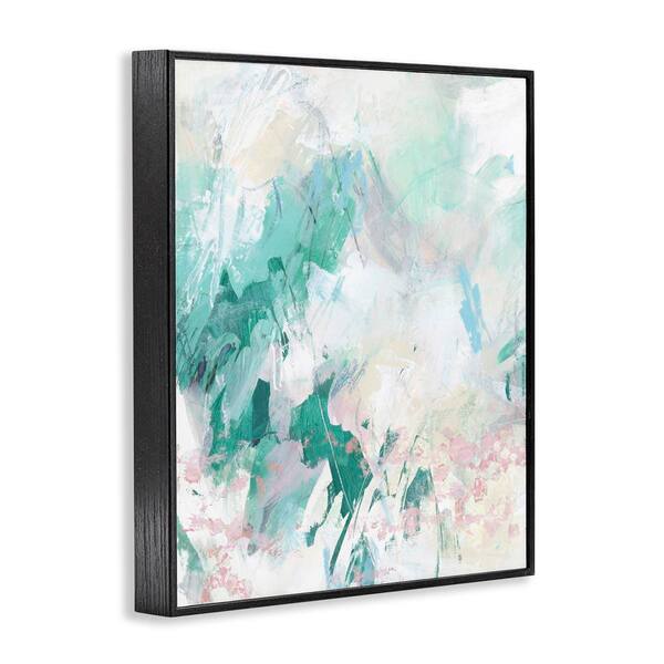Green Faded Splatter by June Erica Vess Black Framed Abstract Giclee Art Print 14 in. x 11 in.