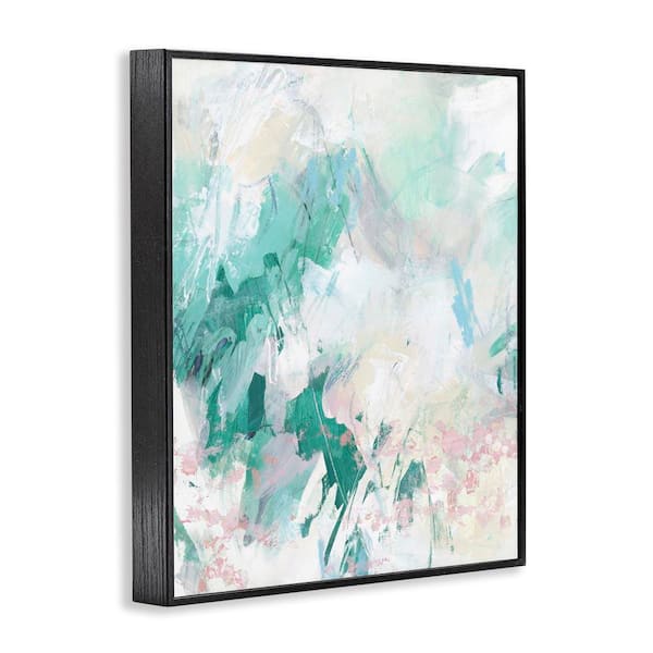 Green Faded Splatter by June Erica Vess Black Framed Abstract Giclee Art Print 20 in. x 16 in.