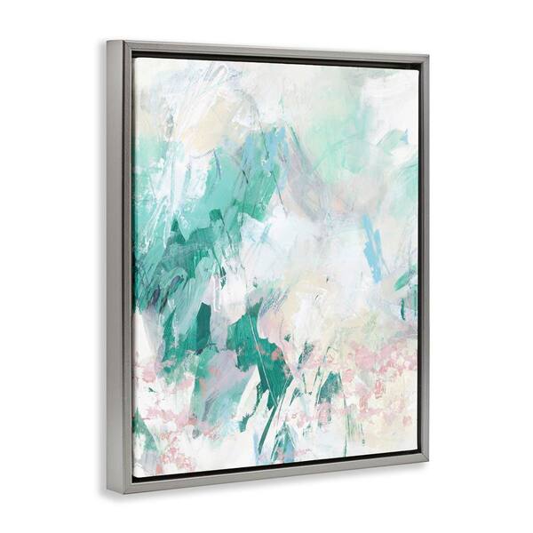 Green Faded Splatter by June Erica Vess Gray Floater Frame Abstract Graphic Art Print 31 in. x 25 in.