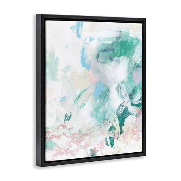 Green Fading Brush Strokes by June Erica Vess Black Floater Frame Abstract Graphic Art Print 21 in. x 17 in.