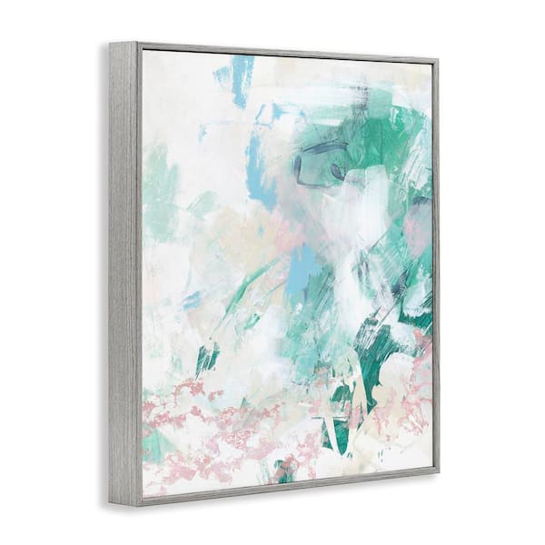 Green Fading Brush Strokes by June Erica Vess Gray Framed Abstract Giclee Art Print 14 in. x 11 in.