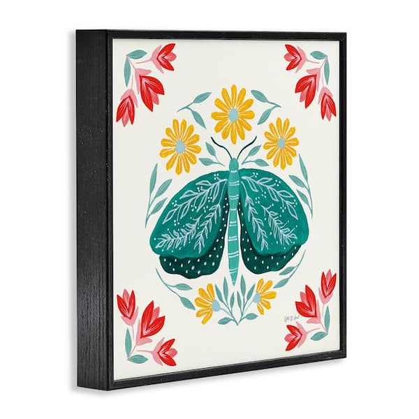 Green Folk Butterfly by Yvette St. Amant Black Framed Animal Giclee Art Print 12 in. x 12 in.