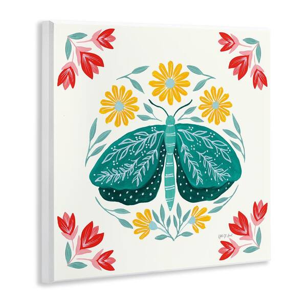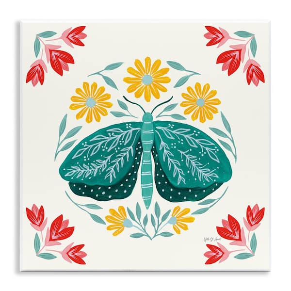 Green Folk Butterfly by Yvette St. Amant Unframed Animal Graphic Art Print 12 in. x 12 in.