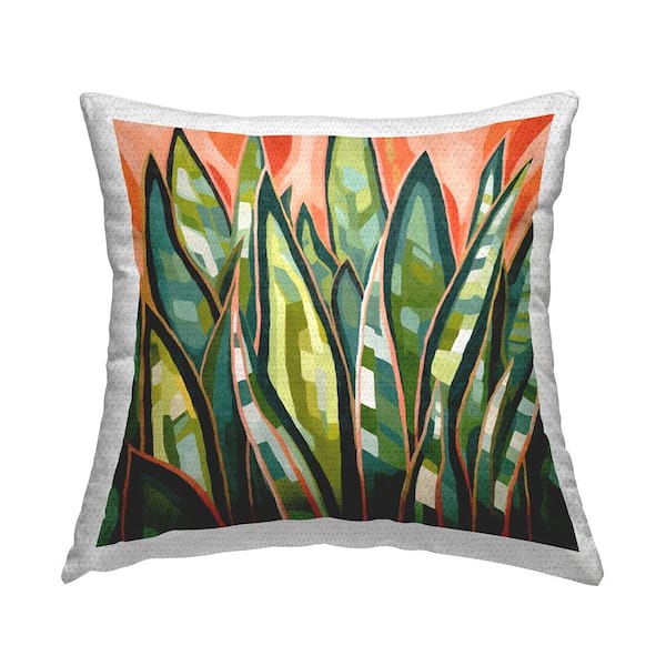 Green and Orange Leaves Green Square Outdoor Throw Pillow