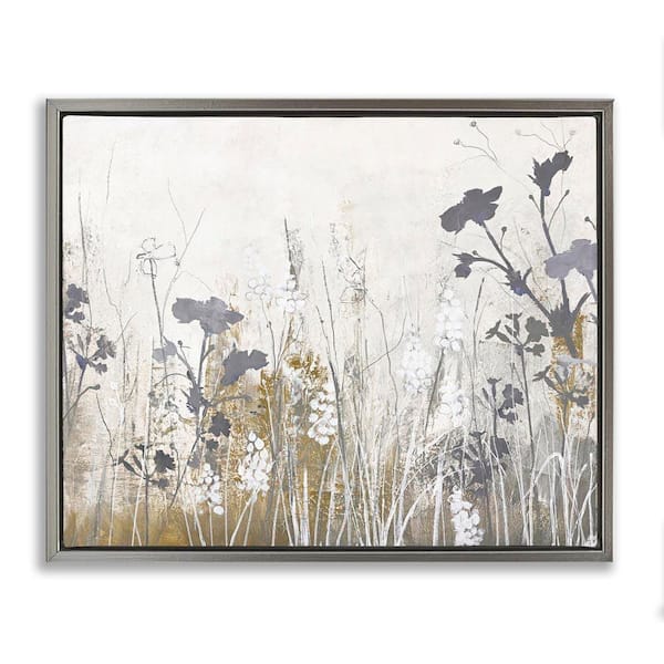 Grey Flower Silhouettes by Design Fabrikken Gray Floater Frame Nature Graphic Art Print 25 in. x 31 in.