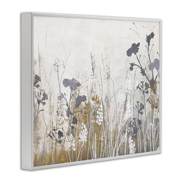 Grey Flower Silhouettes by Design Fabrikken White Framed Nature Giclee Art Print 24 in. x 30 in.