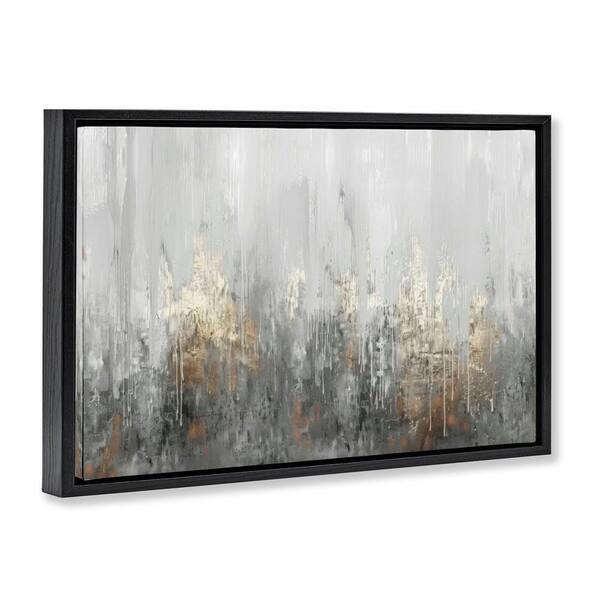 Grey Silver Abstract Drip by LSR Design Studio Black Floater Frame Abstract Graphic Art Print 17 in. x 25 in.