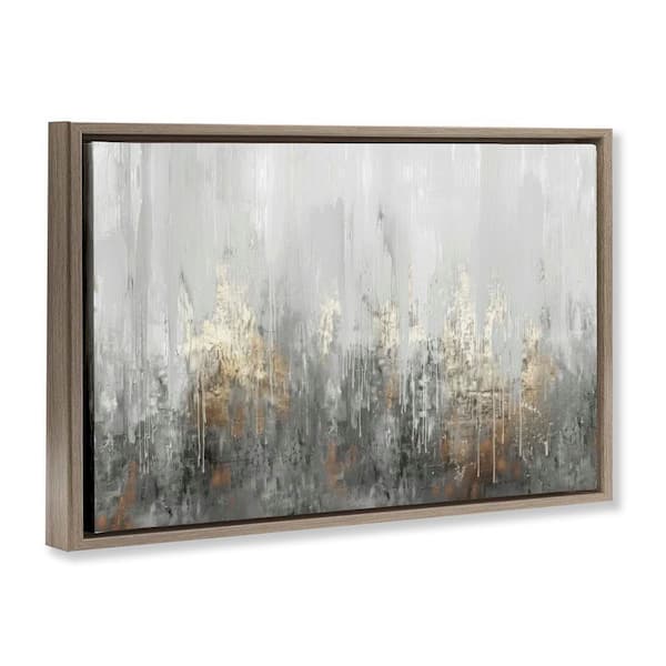 Grey Silver Abstract Drip by LSR Design Studio Brown Floater Frame Abstract Graphic Art Print 17 in. x 25 in.