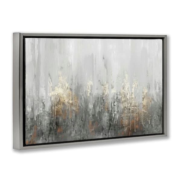 Grey Silver Abstract Drip by LSR Design Studio Gray Floater Frame Abstract Graphic Art Print 21 in. x 31 in.