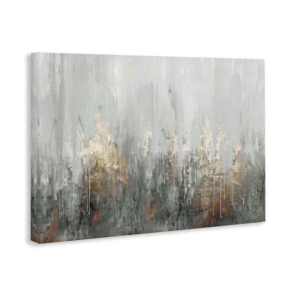 Grey Silver Abstract Drip by LSR Design Studio Unframed Abstract Graphic Art Print 24 in. x 36 in.