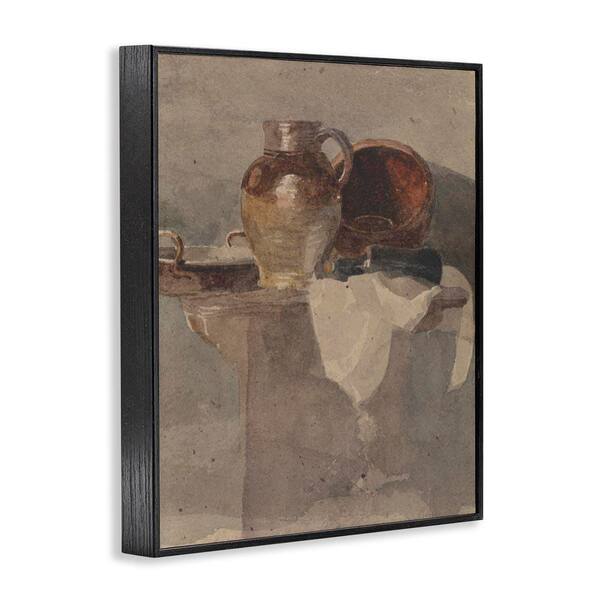 Grey Still Life Vase by Peter Dewint Black Framed Typography Giclee Art Print 20 in. x 16 in.