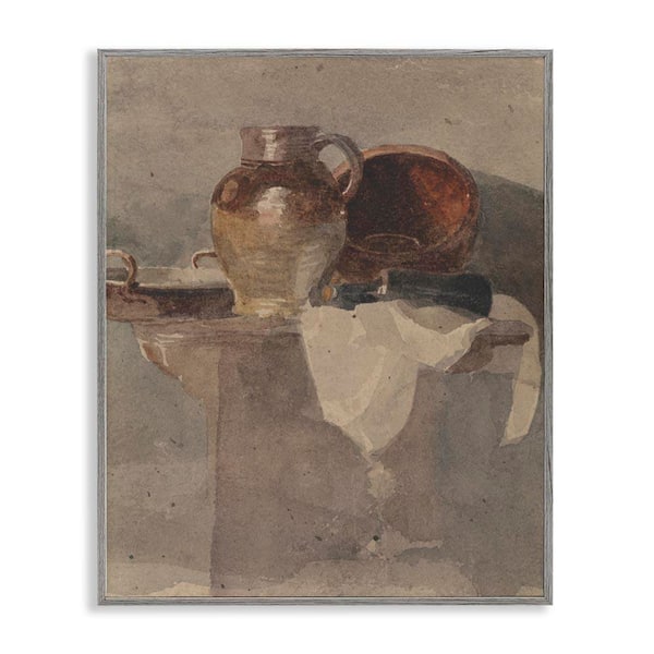 Grey Still Life Vase by Peter Dewint Gray Framed Typography Giclee Art Print 30 in. x 24 in.