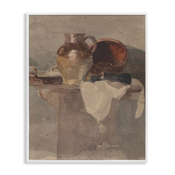 Grey Still Life Vase by Peter Dewint White Framed Typography Giclee Art Print 20 in. x 16 in.