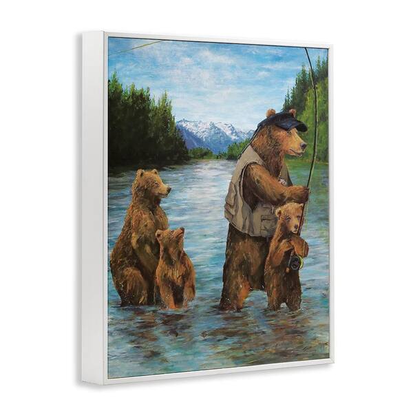 Grizzly Bear Family Fishing Landscape by Kamdon Kreations 1-Piece White Framed Animal Giclee Art Print 14 in. x 11 in.
