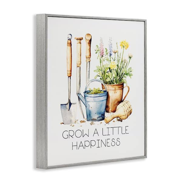 Grow Happiness Gardening by Karen Smith Gray Framed Nature Giclee Art Print 20 in. x 16 in.