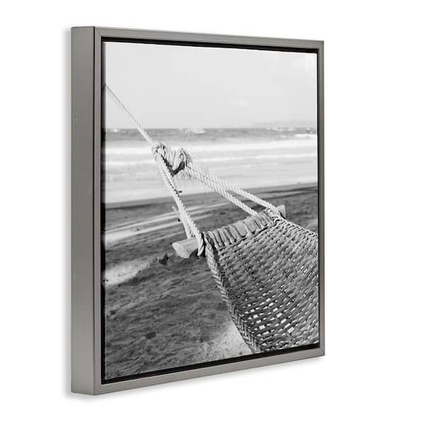 Hammock Lounging by Shore by LSR Design Studio Gray Floater Frame Coastal Graphic Art Print 18 in. x 18 in.