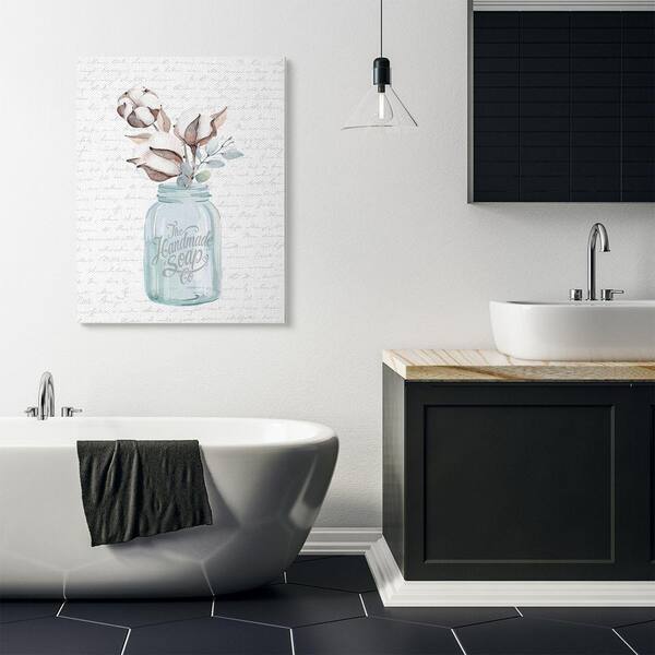 "Handmade Soap Jar Cotton Flower Bathroom Word Design" by Lettered and Lined Canvas Typography Wall Art 48 in. x 36 in.