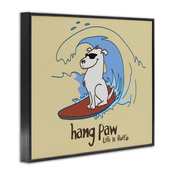 Hang Paw Surfing Dog by LIR Black Framed Animal Giclee Art Print 16 in. x 20 in.