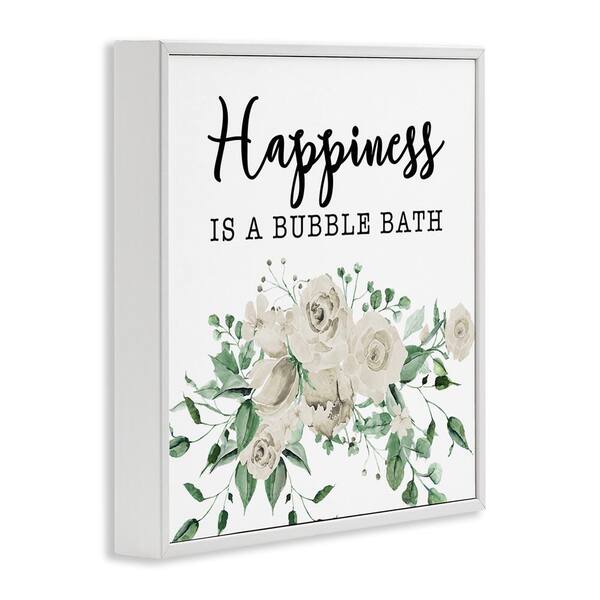 Happiness is Bubble Bath by Masey St. Studios White Framed Typography Giclee Art Print 17 in. x 17 in.