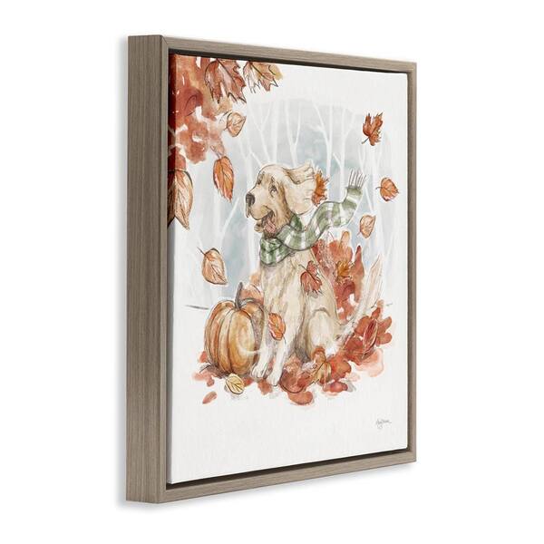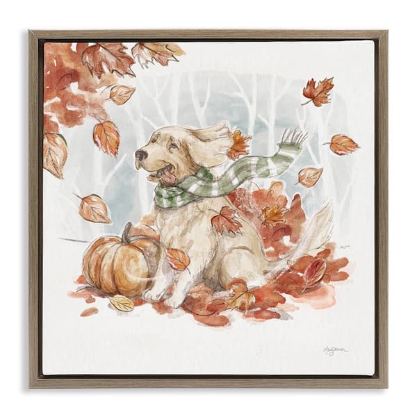 Happy Autumn Labrador by Mary Urban Brown Floater Frame Graphic Typography Art Print 25 in. x 25 in.