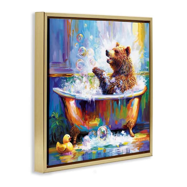 Happy Bear in Bathtub by Leon Devenice Gold Floater Frame Animal Graphic Art Print 25 in. x 25 in.