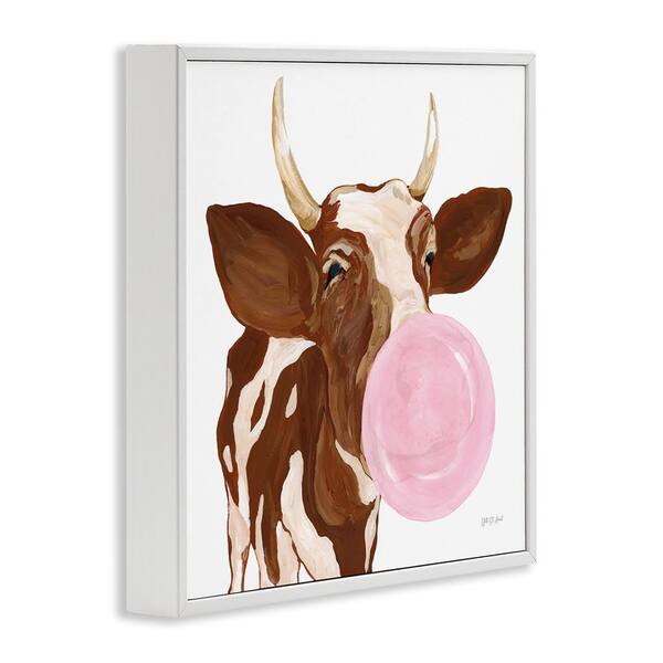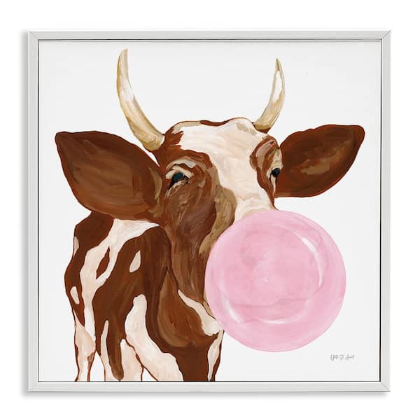 Happy Bubblegum Cow by Yvette St. Amant White Framed Animal Giclee Art Print 24 in. x 24 in.