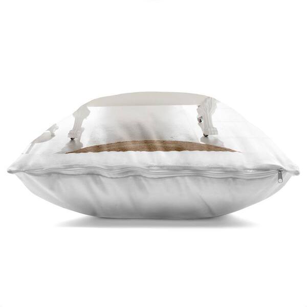 Happy Dog in Bathroom Tub White Abstract Polyester 18 in. x 18 in. Throw Pillow