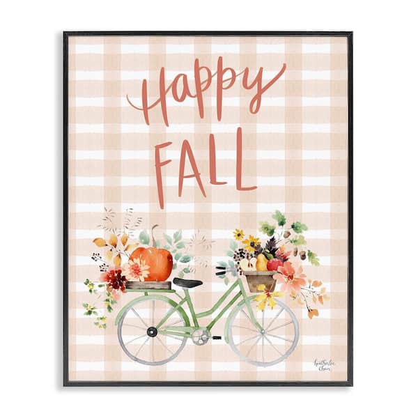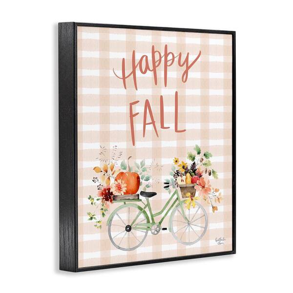 Happy Fall Plaid Flowers Blooming Bicycle by Heatherlee Chan Black Framed Graphic Travel Art Print 11 in. x 14 in.