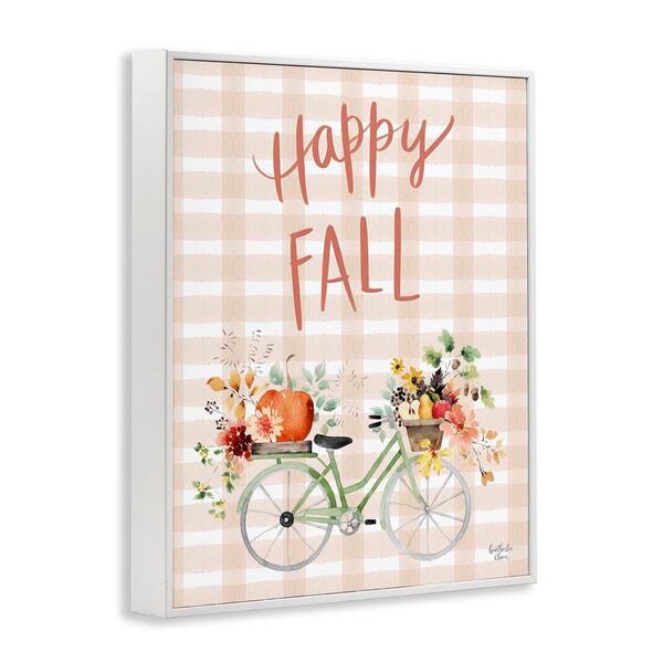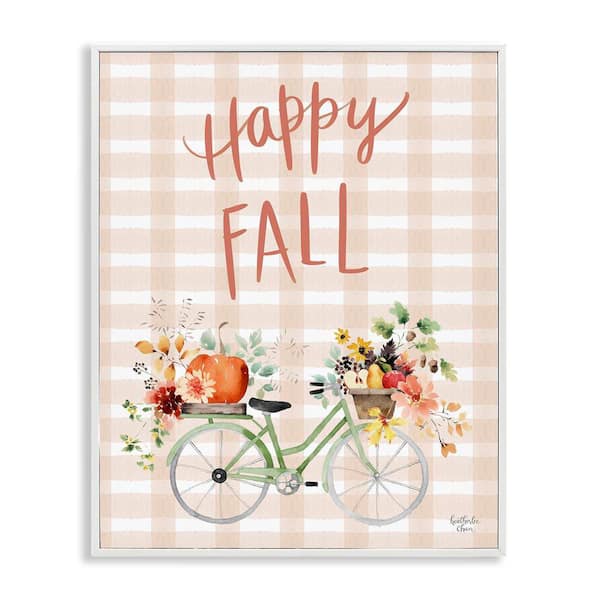 Happy Fall Plaid Flowers Blooming Bicycle by Heatherlee Chan White Framed Graphic Travel Art Print 11 in. x 14 in.