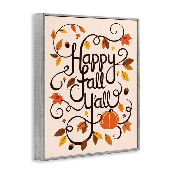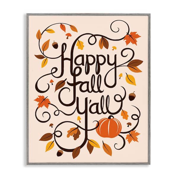 Happy Fall Y'all Phrase Autumn Foliage Acorns by Jo Taylor Gray Framed Graphic Typography Art Print 16 in. x 20 in.
