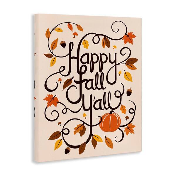 Happy Fall Y'all Phrase Autumn Foliage Acorns by Jo Taylor Unframed Graphic Typography Art Print 20 in. x 16 in.