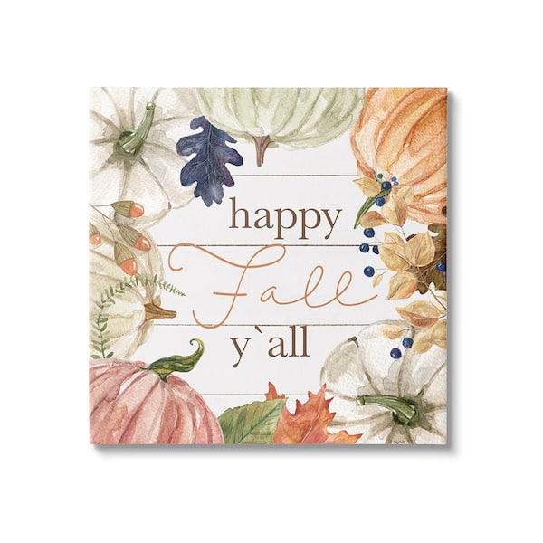 Happy Fall Y'all Phrase by Carol Robinson 1-Piece Unframed Graphic Print Typography Poster Art Print 30 in. x 30 in.