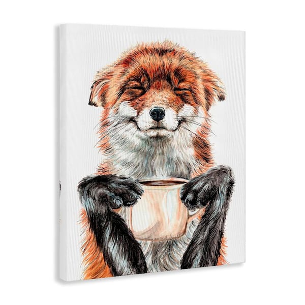 Happy Fox with Coffee by Holly Simental 1-Piece Gallery Wrapped Unframed Animal Graphic Art Print 40 in. x 30 in.