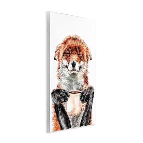 Happy Fox with Coffee by Holly Simental 1 Piece Unframed Animal Graphic Art Print 15 in. x 10 in.